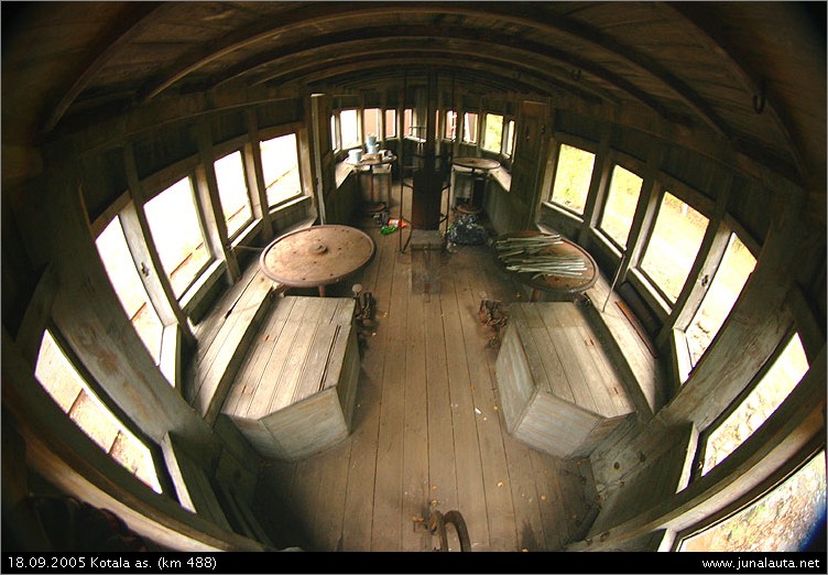 Kotalan auravaunun ulkopinnan maalaustoimet olivat vauhdissa syksyllä 2005, kuten sisältä löytyvistä maalipurkkipinoista voi havaita! :) |