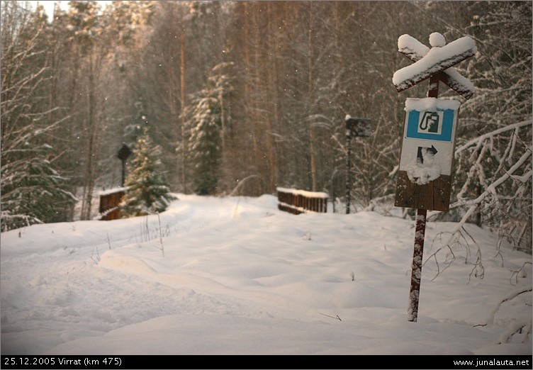 Virtain toinen huoltsikkaopaste löytyy kt66:n sillan jälkeen. Moottorikelkkalinjaus haarautuu soramonttuun.. |